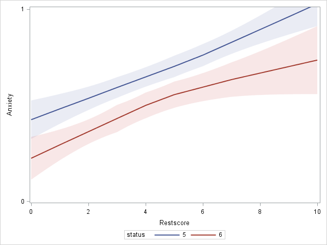 smalld1 <- dat.compl[(dat$sex==1),]smalld2 <- dat.compl[(dat$sex==2),]library(ggplot2)ggplot(data = dat.compl, aes(x = score)) +geom_smooth(data = smalld1, aes(x = score, y = Hopeless), color ="red") +geom_smooth(data = smalld2, aes(x = score, y = Hopeless), color ="brown")
