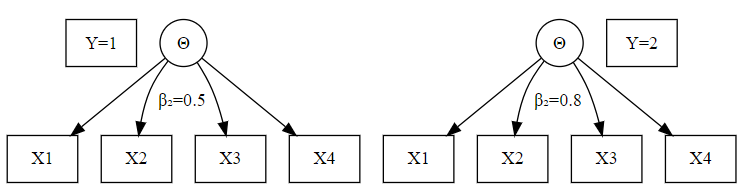 \] the item response does not depend directly on a covariate \(Y\) like gender.